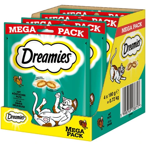 Lieferumfang: 4x Dreamies Klassiker Katzensnacks Katzenleckerli Leckerli Pute 180g
