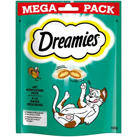 Um gleich auf den Punkt zu kommen: Wie machst du deiner Katze eine Freude? Nichts einfacher als das! Gib ihr diese verlockenden Snacks mit Pute – da möchte jede Katze mehr. Außen kross, innen cremig: Katzen sind verrückt nach dem unwiderstehlichen Geschmack von DREAMIES Katzensnacks mit Pute. Dazu nutzen wir keine geheime Zutat, sondern verwenden Für DREAMIES nur Zutaten, die Katzen besonders lieben. Schüttel den Beutel und sieh‘ zu, wie Deine Katze angerannt kommt.