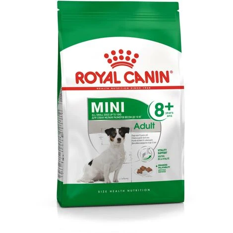 Mini Erwachsener 8+ von Royal Canin ist ein vollst_ndig ) mit N_hrstoffen, die helfen, die Vitalit_t aufrechtzuerhalten und vor den ersten Anzeichen des Alterns zu schÙtzen, enth_lt einen patentierten antioxidativen Komplex,