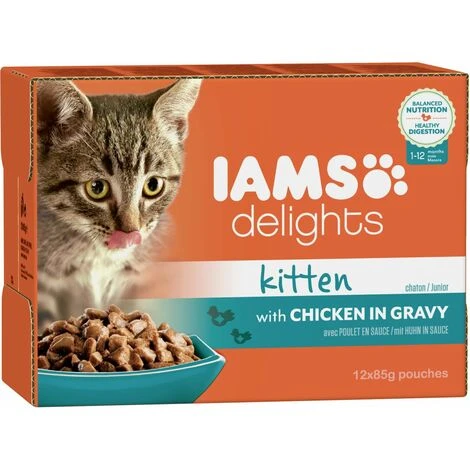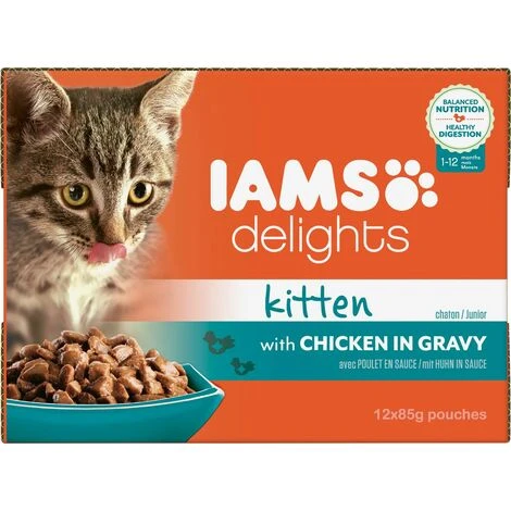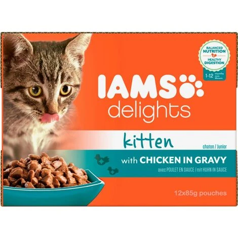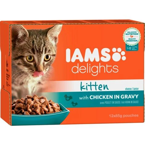 Iams Delights sind neue Premium Katzen Nassfuttervarianten aus hochwertigem Fleisch und Fisch in leckeren Geschmacksvariationen für eine 100 % vollwertige und ausgewogene Ernährung.Inhalt: 12 x 85 ggeeignet für: KatzenFutterart: vollwertiges Futter mit Fleisch & FischFutterform: NassfutterZusammensetzung: Fleisch und tierische Nebenerzeugnisse (28 % Huhn, 6 % Schwein), Öle und Fette (0,2 % Fischöl), Pflanzliche Nebenerzeugnisse (0,6 % Rübenfaser), Mineralstoffe.Analytische Bestandteile: Protein (8,6%),Fettgehalt (4,1%),Rohasche (1,8%),Rohfaser(0,24%),Kalzium(0,30%),Feuchtigkeit(82,5%).Zusatzstoffe: Konservierungsmittel. Tierfutter – Nicht für den menschlichen Verzehr geeignet.