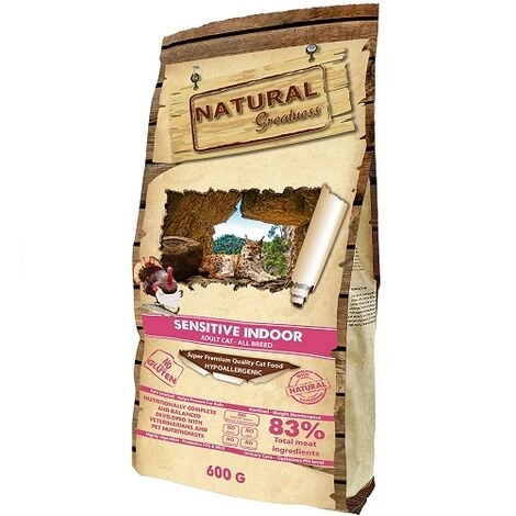 Hypoallergene Rezept, die zur F_rderung erwachsener Katzen aus allen Rassen formuliert wurden. Seine Zusammensetzung ist optimal fÙr Ùbergewichtige Katzen, sterilisierte erwachsene Katzen, Senioren und allgemein sesshafte erwachsene Katzen. Das Rezept hat Malzextrakt, um die Bildung von Haarkugeln im Katzenmagen zu verhindern. Eigenschaften: Rezept ohne Getreide, um Allergie zu vermeiden. Mit Probiostik und MOS, um die Verdauung Ihres pelzigen Freundes zu verbessern. PH ist angemessen, sich um den Harnweg Ihres Haustieres zu kÙmmern. Mit essentiellem Fett Omega 3 und Omega 6. FÑrmula Anti -Haarkugeln dank des Malzextrakts. Zusammensetzung: frisches HÙhnerfleisch (40%), dehydriertes HÙhnerfleisch und Truthahn dehydriertes Fleisch (30%), Reis, feines Maismehl, hysidierende Huhnleber (5%), HÙhner_l (4%), dehydratisierter Lachs (3,5%), Hefen, GemÙsefasern, RÙbenzellstoff, Kartoffelprotein, Lachs_l (0,4%), dehydratisiertes Ganzei (0,25%), Mineralstoffe, Extrakt aus Extrakt aus Malta, Inulina (Fos), Manano-Oligosakaridos (Mos ), Zitrische Extrakte (reich an Bioflavonoiden), Yucca Schidigera, Glucosamin, Kondroitin, Romero. Frimula mit 83% der cyanischen Zutaten. Rezept ohne Sojabohnen, Gluten ohne Laktose, ohne Farbstoffe oder Aroma oder kÙnstliche Konservierungsstoffe. Pr_sentation: 1 Sack von 600 g