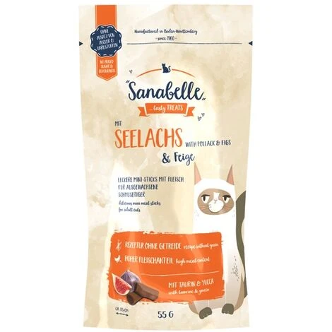 Sanabelle Seelachs & Feige. Produkttyp: Süßigkeiten, Haustiertyp: Katze, Tier-Lebensstadium: Erwachsener, Geschmack: Fisch, Volumen: 55 g