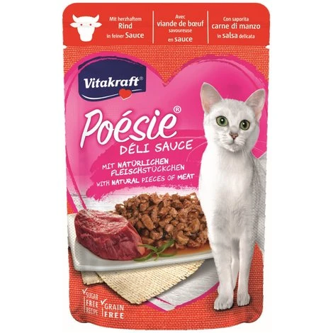 Diese leckeren Häppchen mit herzhaftem Rind in viel feiner Sauce sind ein wahres Gedicht für jede Katze und begeistern durch einen einzigartigen Geschmack. Beutel für Beutel enthält Vitakraft Poesie Deli Sauce natürliche, hochwertige Fleischstückchen für puren Genuss, den Ihr Stubentiger lieben wird. Beste Zutaten garantieren höchste Qualität und sind ernährungsphysiologisch perfekt auf die Bedürfnisse der Katze abgestimmt. Auch Ihr Liebling wird von dieser Delikatesse nicht genug bekommen können.