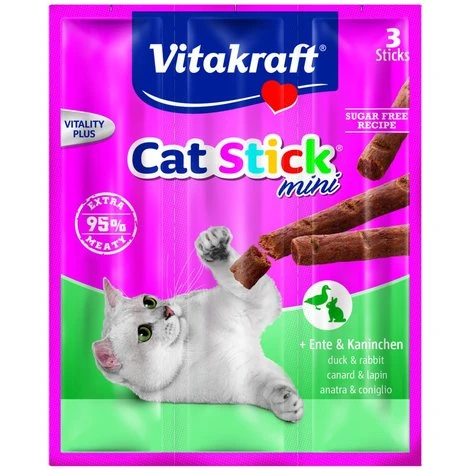 Vitakraft Katzensnack Cat-Stick mini: Nach diesen fleischigen Mini-Sticks ist einfach jede Katze verrückt! Leckerer Geruch, unwiderstehlicher Geschmack – ganz ohne künstliche Geschmacksverstärker.