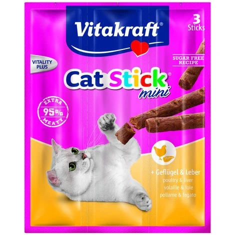 Vitakraft Katzensnack Cat-Stick mini: Nach diesen fleischigen Mini-Sticks ist einfach jede Katze verrückt! Leckerer Geruch, unwiderstehlicher Geschmack – ganz ohne künstliche Geschmacksverstärker.