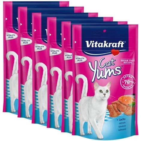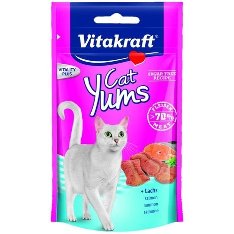 Die extra fleischigen Cat Yums mit feinem Lachs werden in einem einzigartigen Verfahren hergestellt – mit besten Zutaten und nach zuckerfreier Rezeptur.